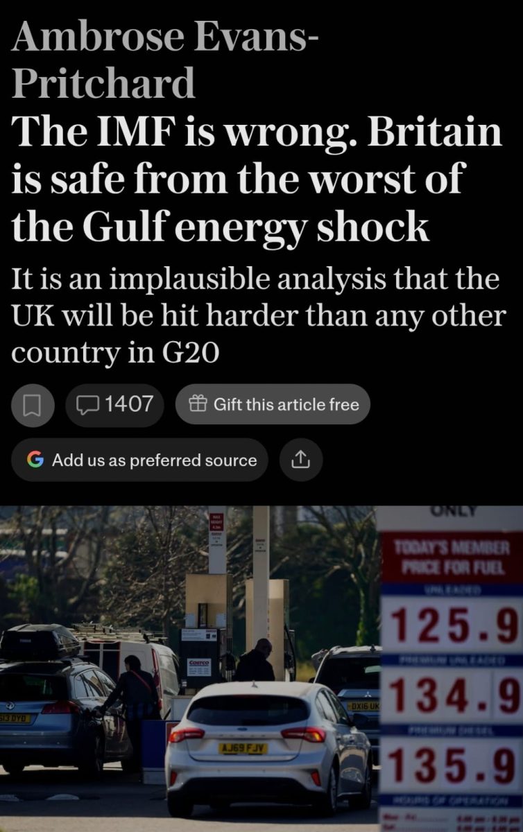 Article: The IMF is wrong — Britain is safe from the worst of the Gulf energy shock Source: The Telegraph